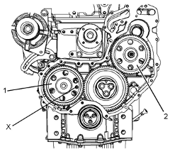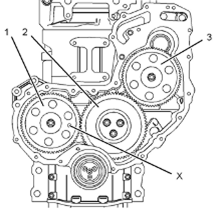 4將工具(B)穿過(guò)Perkins1106A/C發(fā)動(dòng)機(jī)凸輪軸齒輪(1)的孔(X)安裝到前Perkins1106A/C發(fā)動(dòng)機(jī)機(jī)殼體中。使用工具(B)將Perkins1106A/C發(fā)動(dòng)機(jī)凸輪軸鎖定到位。
