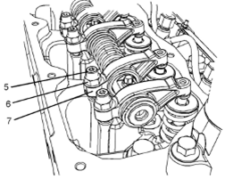 7松開(kāi)所有搖臂(7)上的螺母(6)。擰松所有搖臂(7)上的調(diào)節(jié)器(5),直到所有氣門完全閉合。