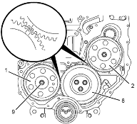 8標(biāo)記齒輪(1)、(2)和(8)以便顯示對(duì)準(zhǔn)位置。請(qǐng)參閱插圖123。