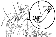 1拆下將旁通管(2)固定在前Perkins1106A/C發(fā)動(dòng)機(jī)機(jī)殼體(3)上的螺栓(1)。將旁通管(2)從Perkins1106A/C發(fā)動(dòng)機(jī)缸蓋上拆下。從旁通管(2)上卸下O形密封圈(4)和(5)。