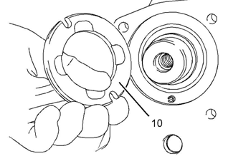 3如有必要,將止推墊圈(10)安裝到Perkins1106A/C發(fā)動(dòng)機(jī)缸體的凹槽中。更多信息請(qǐng)參閱《Perkins1106A/C發(fā)動(dòng)機(jī)拆解和組裝》,“Perkins1106A/C發(fā)動(dòng)機(jī)凸輪軸-安裝”。