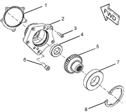 a.檢查齒輪(5)的輪齒和花鍵有無磨損或損壞。檢查軸承(7)、軸承(4)和卡環(huán)(8)。檢查前Perkins1106A/C發(fā)動(dòng)機(jī)機(jī)殼體有無磨損或損壞。更換任何損壞或磨損的部件。