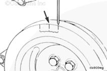 制作一個(gè)導(dǎo)線指示箭頭并安裝在康明斯ISB5.9 G CM2180 發(fā)動(dòng)機(jī)前部。用一段導(dǎo)線放在齒輪室蓋其中的一個(gè)螺釘下面并擰緊就可以作到這一點(diǎn)。導(dǎo)線必須從齒輪室蓋延伸到曲軸減振器上某個(gè)容易被看到的地方。