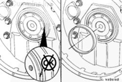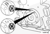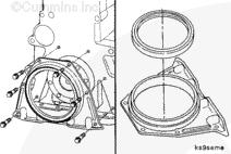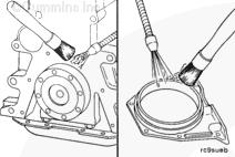 曲軸后油封安裝在殼體上,該殼體通過(guò)螺栓安裝在缸體后部。使用雙層 Teflon™ 密封件。曲軸密封面必須清潔并且在安裝油封時(shí)沒(méi)有機(jī)油。