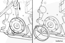 交替擰緊螺母并轉(zhuǎn)動(dòng)半圈,直到安裝工具接觸到曲軸端。