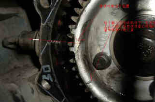 7.懷疑到曲軸正時齒輪移位,于是拆檢齒輪室,發(fā)現曲軸正時齒輪已經崩齒且移位圖