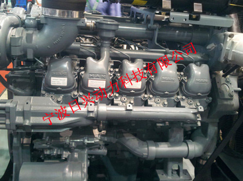 德國曼MAN工業(yè)重型發(fā)動機、四沖程、直接噴射、水冷、廢氣渦輪增壓及中間冷卻。